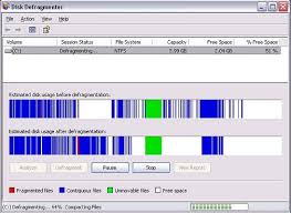 he condition of a file that is broken up and stored in many different locations on a magnetic disk.